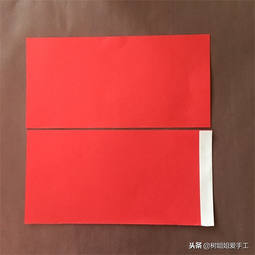 我们将红色彩纸14X14CM分成2等分,在一端纵向贴好双面胶,然后用胶棒将一端卷起,私下双面胶粘好,如下图所示: