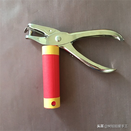 我们用手持单孔打孔器在黄色部位打孔,用同样的方式多做几个,数量取决于你的线长。