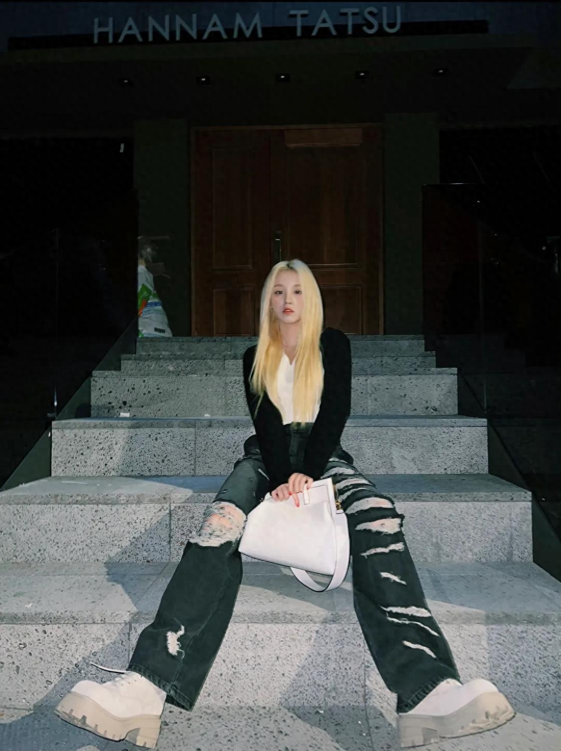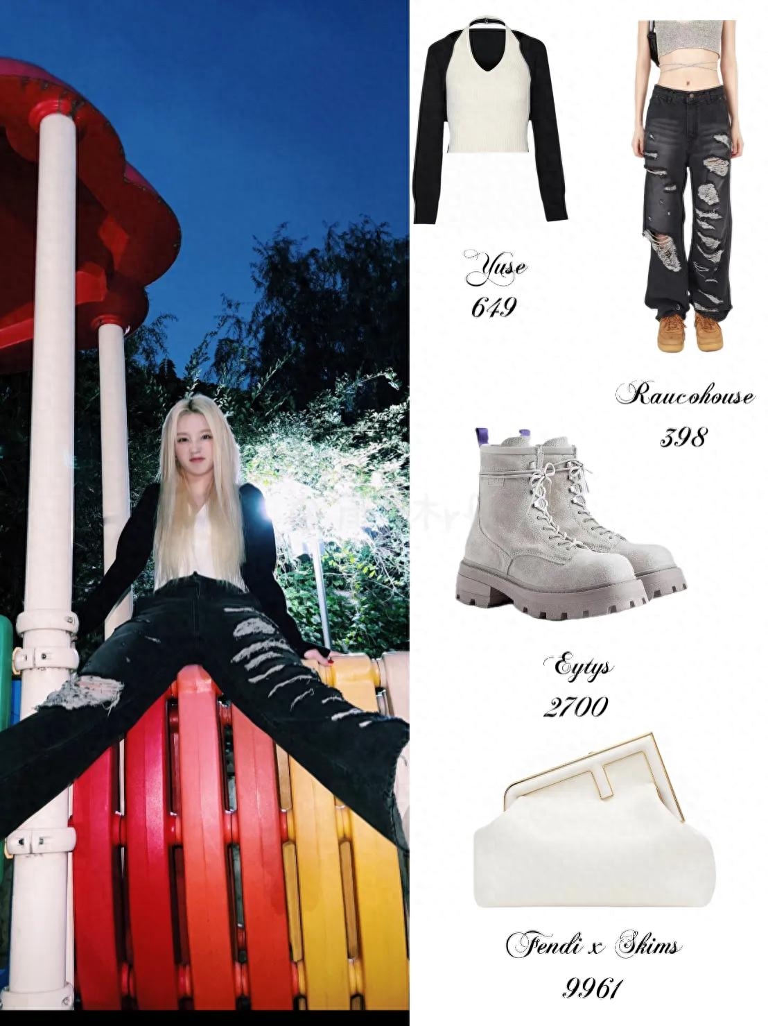 裤子:Raucohouse美式辣妹做旧撕裂破洞牛仔裤