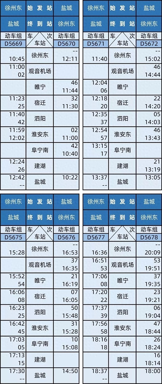 ★ 徐盐高铁、连镇高铁连淮段开通运营初期,铁路部门将安排开行动车组列车日常线11对。