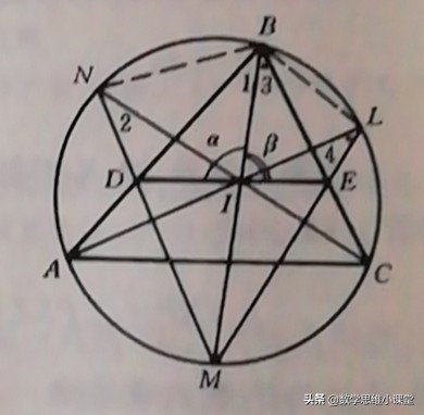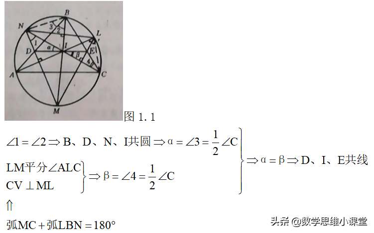 设α=∠DIN,B=∠CIE,其它各角如图1.1所示,则有M平分弧AC,
