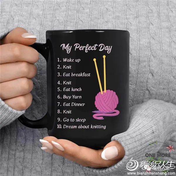 「我理想的一天:起床、编织、早餐、编织、午餐、编织、买毛线、晚餐、编织、睡觉、梦见编织」