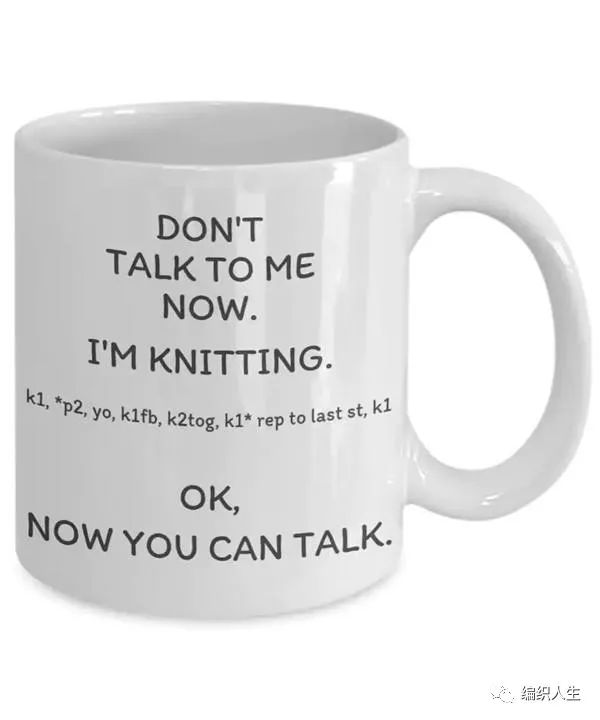 「现在不要和我说话,我在编织,(1下,2上,空加针……)好了,现在你可以讲话了」