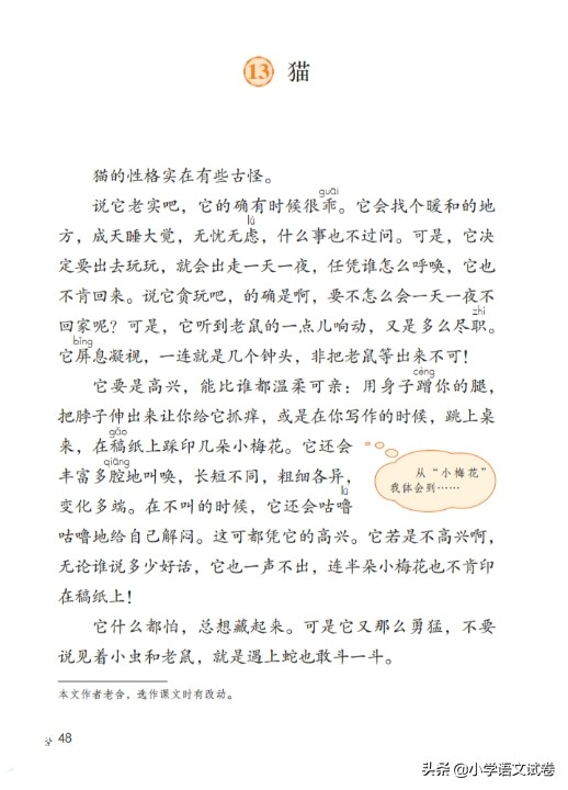 老舍猫的赏析与解析(老舍《猫》教材解析)