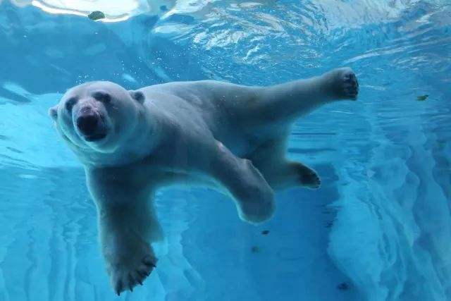 (北极熊是游泳健将。)