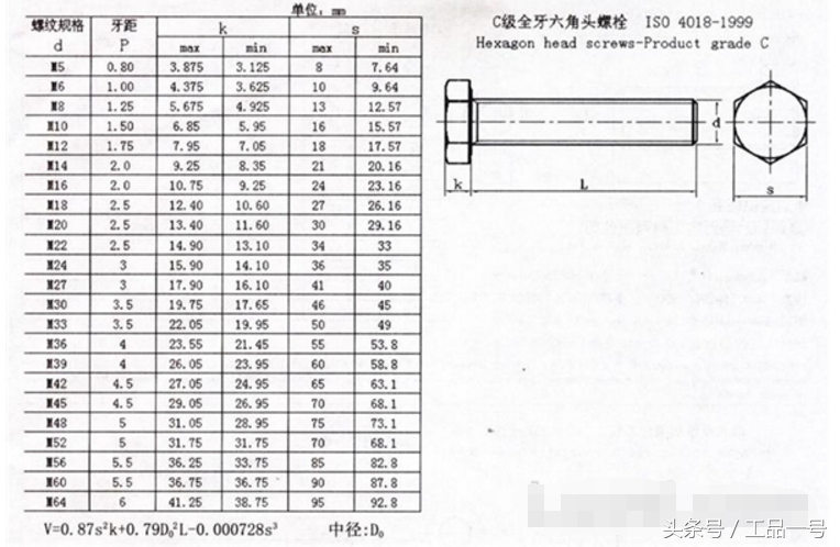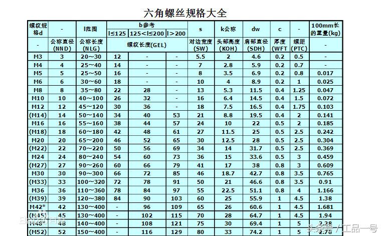 外六角螺栓标准尺寸(教你认识六角头螺栓标准规格尺寸表的知识)