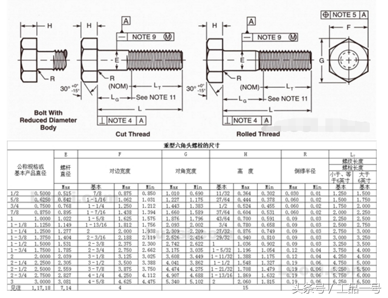 1、ASME B18.2.1 1996 大六角头螺栓规格尺寸表