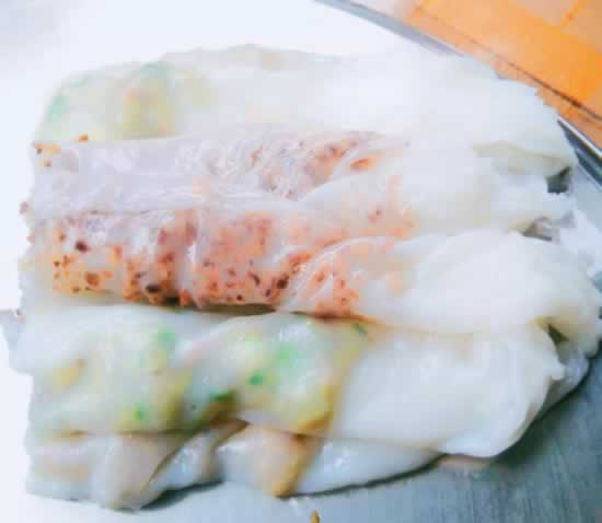 小卷粉是以桂朝米原料进行加工,制成米浆后,放入特制工具将米浆蒸至白色半透明状,在其中放入馅料后卷成圆筒状,辅以作料之后 即可食用。小卷粉最大的特色是现做现吃,便宜实惠,风味绝佳。