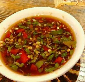 小卷粉的蘸水马虎不的,光辣椒就有四五种,有干辣椒、辣椒油、小米辣、糟辣椒、辣酱等等,还有姜汤、蒜汤、卤腐、花生米、香菜、鱼腥草(又名折耳根)、醋、酱油、麻油、蒜油、白糖、盐等等。