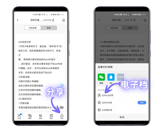 接下来查看识别结果,不仅识别率高,而且排版也很整齐,有错误的地方还能智能纠错,文本内容支持一键复制、导出为Word。