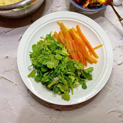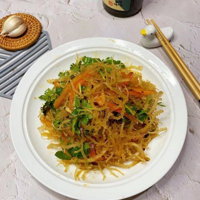 5、这道【凉拌龙须菜】做法简单,爽口解腻,加了香菜和青椒在颜值上也有所提高,不管是自家吃还是招待客人都是一道很有面儿的凉菜,最主要的是做法超简单,厨房小白一看也会。