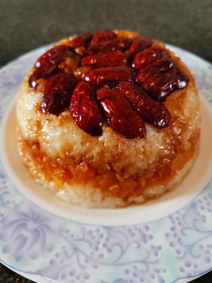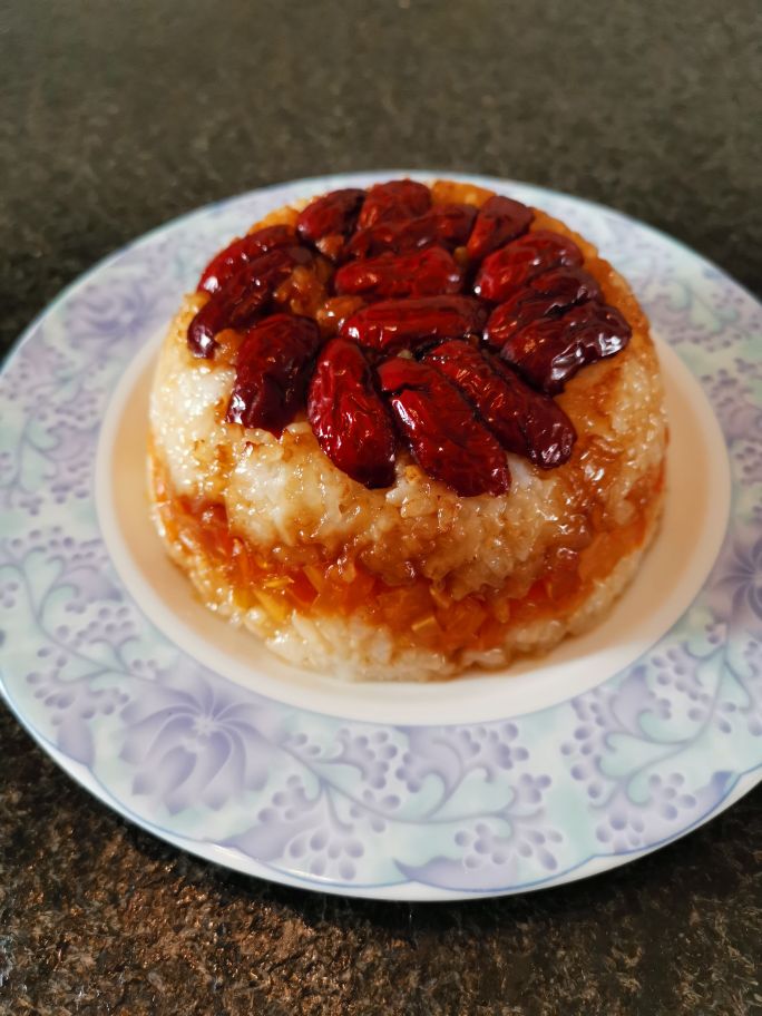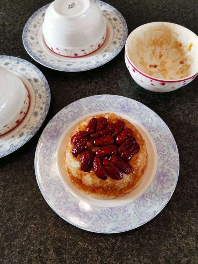 2、碗的底部及四周都抹油(方便脱模),将去核的红枣放入。