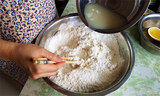 和面时,水要分多次少量加,避免面和的太软,蒸馒头的面和的硬一点,蒸出来的馒头比较好吃
