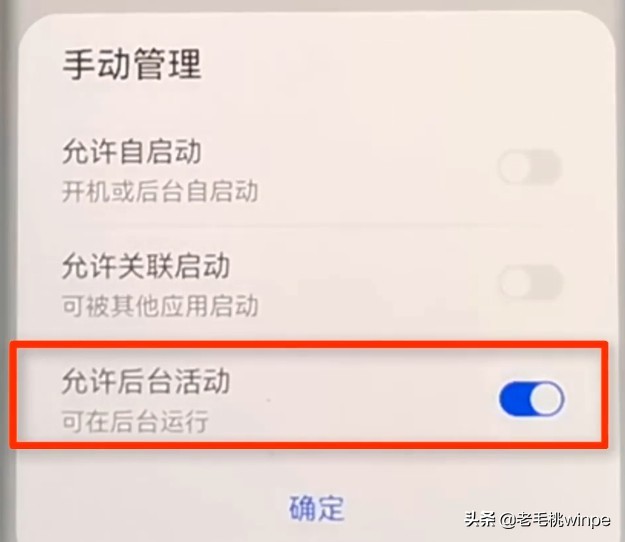 -【应用和服务】-【应用启动管理】,在页面中找到微信,点击右侧的开关,选择【允许后台活动】即可搞定!