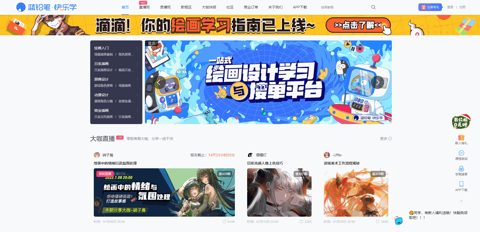 这是一个专门学习绘画艺术的在线平台,里面包含了大量的专业课、公开课和免费的课程,主要提供了手绘插画、动漫设计、入门培训等,让你零基础也可以轻松学会绘画,你还可以查阅相关的绘画素材和资料。