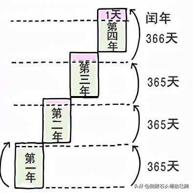 为了使得我们的纪年更符合实际,所以每四年增加一日,并且把这多出了的一天放到二月份,所以闰年的二月份有29天,这一天也叫闰日,这一年共有366日,就是闰年。