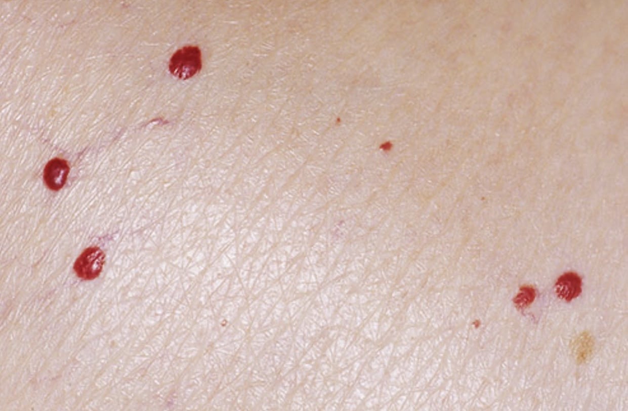 这个其实是”樱桃状血管瘤”,俗称“老年性血管瘤”,因为年龄越大,越容易长,不过年轻人也可以有的。