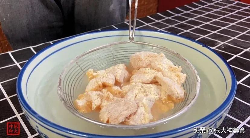这会啊,您看好了,我们再把鸡肉迅速放在清水中沾一遍凉水,然后再把他放到面粉里使劲揉搓,最后再把多余的面粉筛掉。这样咱们炸好的鸡米花更有型更酥脆。