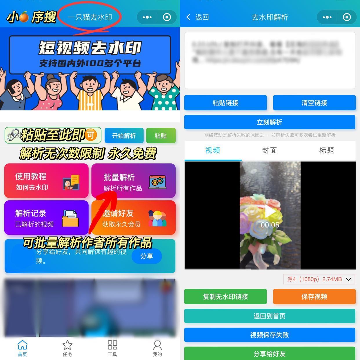步骤三:把刚刚复制的视频链接,粘贴到输入框内进行解析,解析完成后即可下载无水印视频