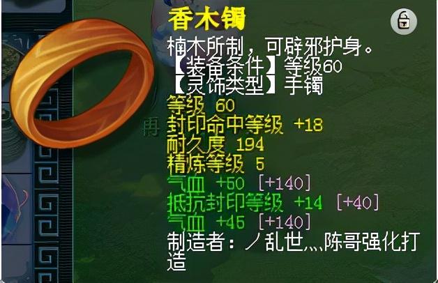 后排灵饰选择了附加双气血属性的,外加一条抵抗封印命中。这两件装备的价格都是220,感觉没什么好说的,手镯主属性是抗封的话贵80左右,所以选择了封印。强壮点满之后准备换4防御,4血还是防御太低了, 根本不抗打。