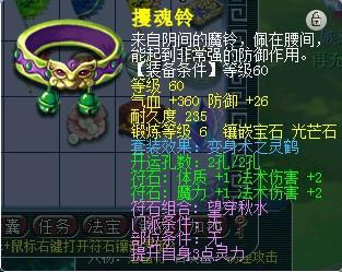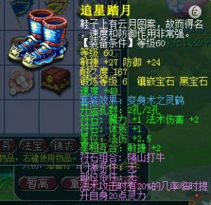 鞋子也是个灵鹤环装,没有符石组合就选择了隔山打牛,符石+3法伤,价格上会稍微贵点了,255买的,自己开的星位与打的6段宝石。