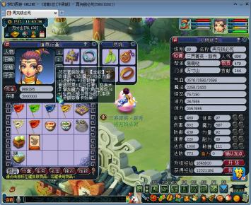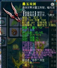 69级全魔属性加点的方寸山,武器配置了一把70级简易双短剑,单加魔力19,打满了7级太阳石,武器伤害326,命中255,开满了3孔。武器没有什么花招,法伤的提升还是靠灵饰装备。