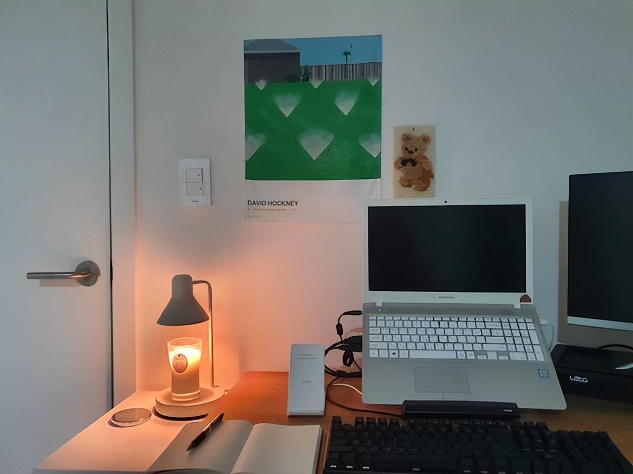 另一个房间打通了小阳台,改造成书房,成为整屋面积第二大的房间。虽然朝北,但采光也非常不错。