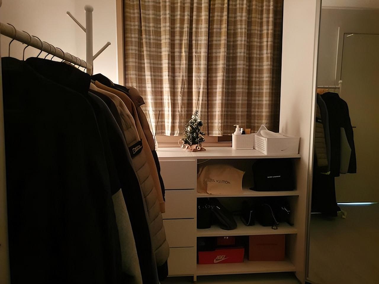 房间内摆满了衣柜、衣架。足够收纳一家人的衣物。
