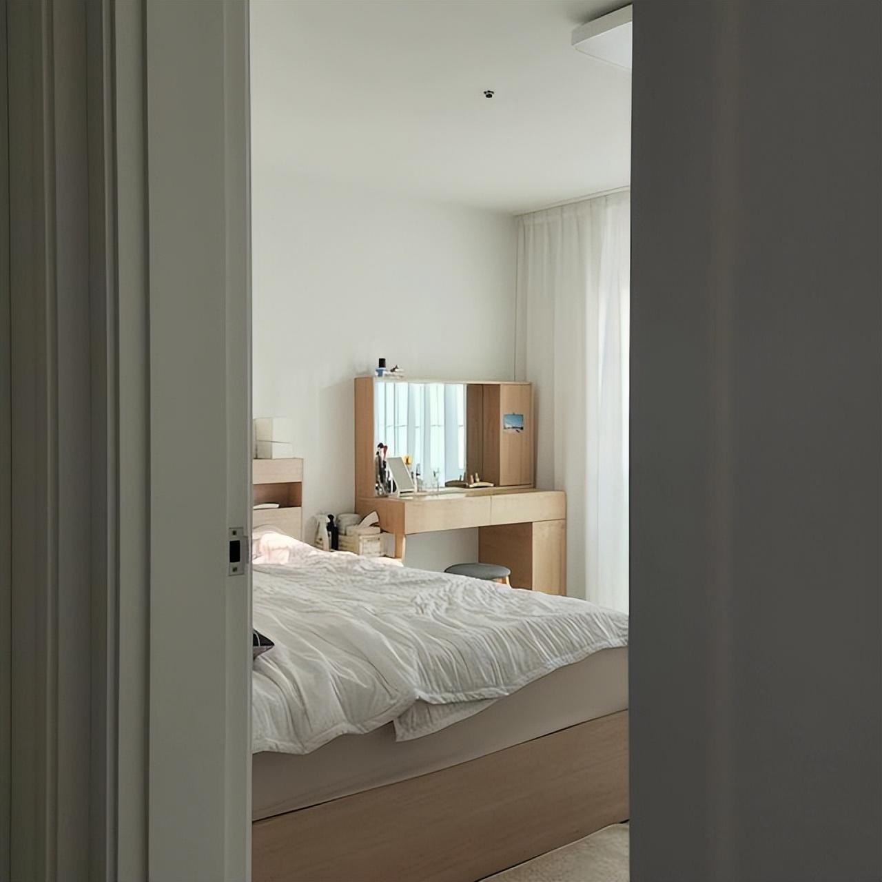 每天早晨,是被鸟鸣和阳光叫醒的。作为卧室,就更不需要复杂的装饰了,实木的家具是最好的配置,铺上松软的床品,在阳光的烘托下,就能拥有堪比电影画面的美好。