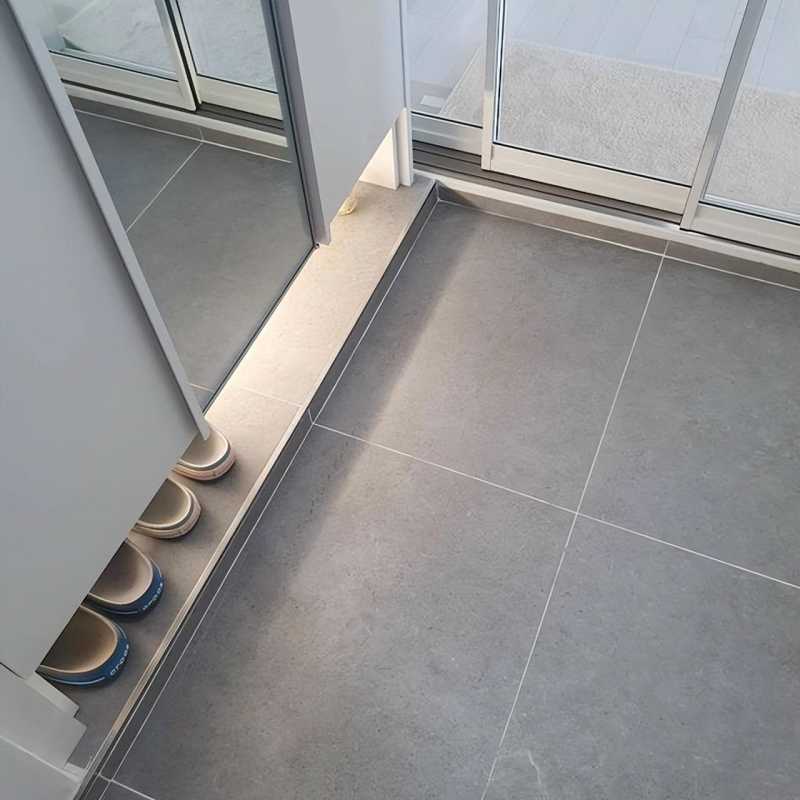 整个玄关采用了“下沉式”的设计,其实是利用了安装地暖的高低差,玄关内的地面没铺地暖,自然地势变低,贴上瓷砖后,不仅耐磨防滑还方便打扫卫生。