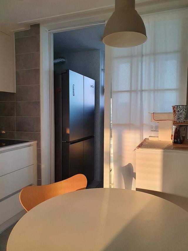 因为离厨房比较近,所以冰箱恰好可以放在右边的阳台。