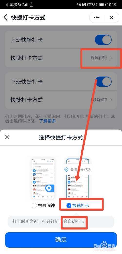 设置钉钉自动打卡的方法如下 1首先,该软件打卡的新功能叫做“极速打卡”功能,确保员工不会忘记打卡 2开启之后,只要上班时间到公司,打开钉钉就能自动打考勤 3管理员登录手机钉钉,依次点击工作考勤。