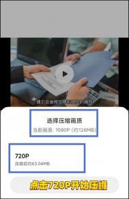 3.由于手机自带的压缩功能比较单一,不能选择压缩的画质和大小,我们可以看到,压缩前是1080p,压缩后变成720p,视频的大小会减少一半左右。