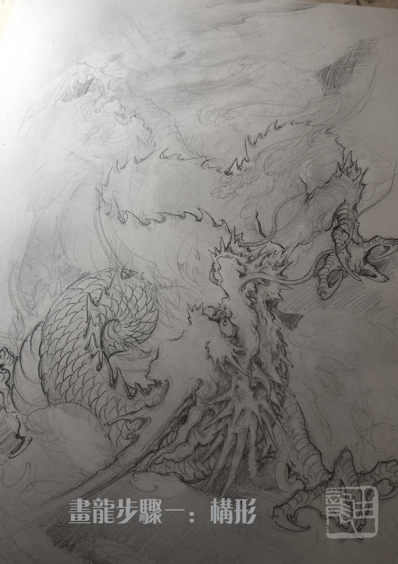 然后就是背景,比如 背后有乌云闪电 你应该看过七龙珠吧 就像那里面的神龙,龙的画法实在是很多,但大体分2种一种是实体画,就是看起来什么都有的那种一种的形象画,这种就是用最简单的几笔把龙的大体画出来。