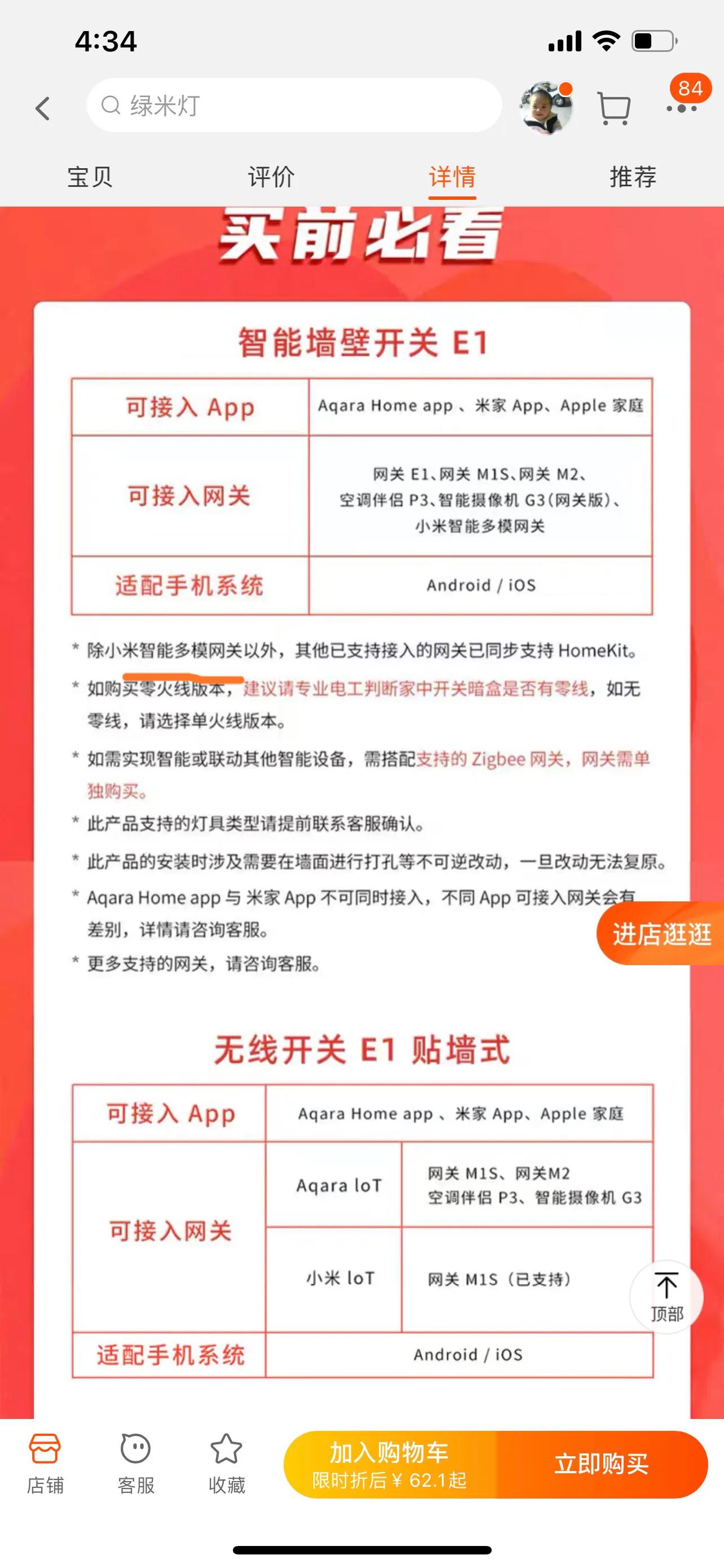 要想同时兼得,就需要用绿米开关D1,这里简单说下D1开关,D1是Zigbee1.2,E1是Zigbee3.0,D1支持米家,苹果homekit,天猫精灵三大主流平台,还可以实现灯具电量及功率监测,并生成电量曲线图直观了解能耗情况(仅D1零火版实现)这几个功能很实用,价格不考虑的话,强烈推荐用D1,D1和E1协议不同,导致不能兼容米家app同步到homekit