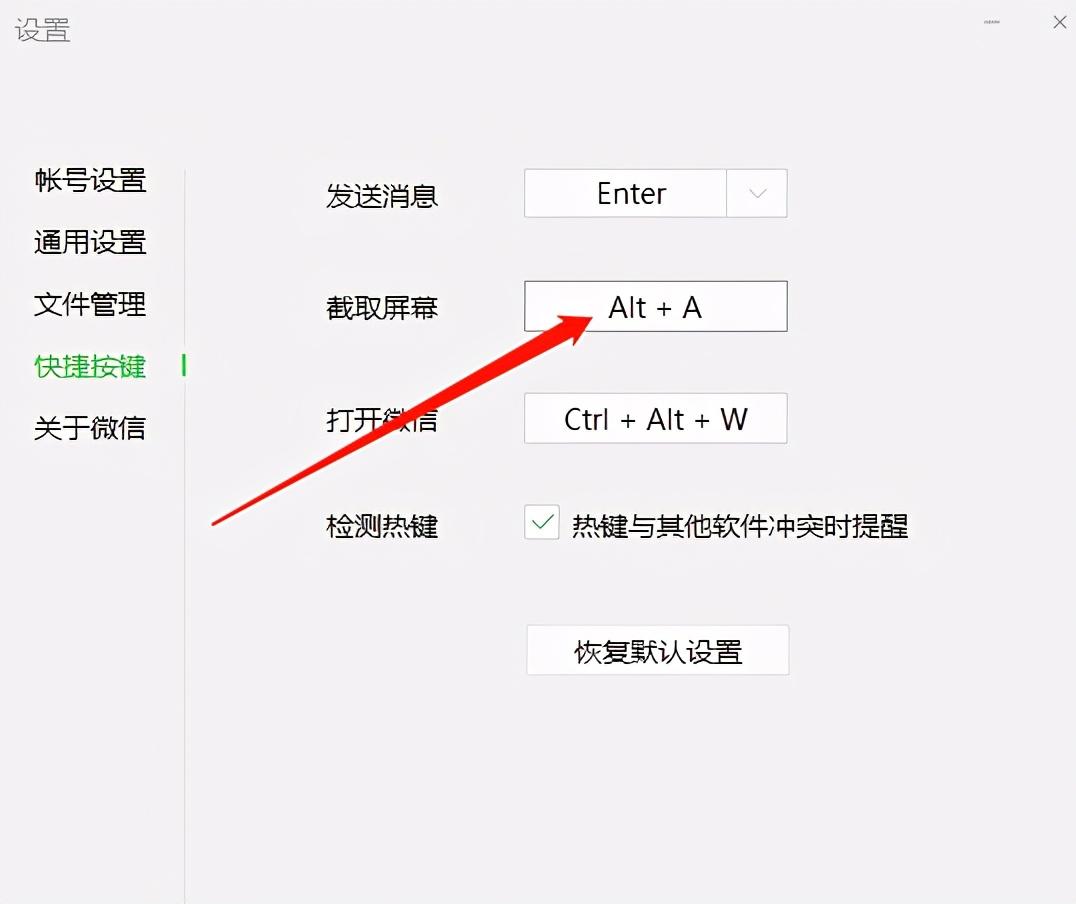 总结一下子:(1、进入微信后,按键盘Alt+A键即可截屏。2、点击左下角的三条杠。3、接着点击设置选项。4、在设置页面,点击快捷按键。5、点击截取屏幕右侧的Alt+A。6、弹出对话框后,可根据自己的习惯设置快捷键截屏。)