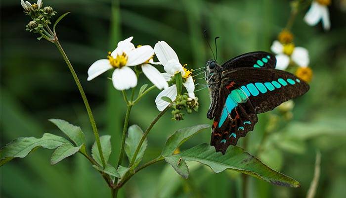 3、触角不同:蚕蛾触角是羽毛状。蝴蝶触角细长,通常呈棒状。
