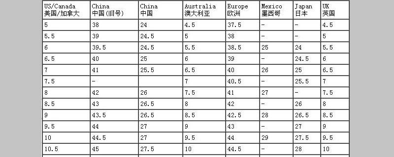 uk与中国鞋码的对照表