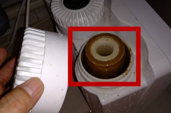 打开滤芯上面的固定板之后就可以取出滤芯,此时要把滤芯所在的过滤腔清洗干净,清洗干净之后就可以把干净的滤芯放入过滤腔内。