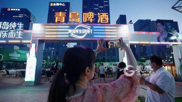 人们热爱啤酒带来的清凉,更热爱啤酒节不一样的鲜活体验。在“活力崂山”啤酒嘉年华崂山区世纪广场啤酒城内,青岛啤酒品牌代言人肖战的巨大人型立牌空降青岛纯生大篷,吸引了众多年轻人前来打卡。这背后有当红”顶流”的号召力,亦是青岛纯生年轻鲜活的吸引力。