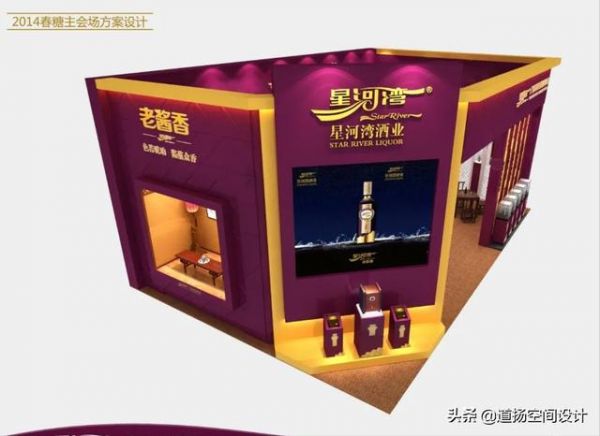 本次的糖酒会布展工作由星河湾酒业委托于道扬设计,拿下本项目,道扬的设计师就被“老酱香”的瓶身吸引,华贵高雅的紫色在瓶身绽放,美得不可方物。于是,道扬的设计团队很快确定了本次的布展主题色——紫色。紫色是星河湾酒业“老酒香”的主题色,用在展位设计中最合适不过,既传达了企业认知精神,也象征着星河湾酒业会在此次糖酒会大展中大红大紫。