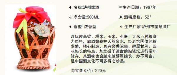 第一款就是小编隆重给大家强烈推荐的了,泸州筐酒,典型的浓香型52°白酒,泸州市筐泉酒厂区处于佛宝国家原始森林笔架山傍,四周无任何污染环境,酿酒之水源全部取之于地下深处的天然泉水,优质的泉水保证了泸州筐酒魔酒酿酒水源之纯正。被中国食品工业协会评为“国家质量达标食品”、“中国知名白酒”,被四川省定为“四川省旅游产品定点生产企业”。给大家推荐最主要的原因是他价格亲民啊,只要200多块钱就可以喝到这样一瓶好酒。