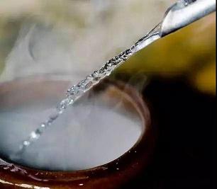 图为通过蒸馏而出的青稞原浆,俗称“酩馏”,酒精度一般低于30度,性味辛温。 钟欣 摄