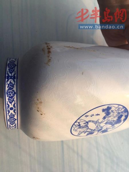 刘先生将包装打开后,发现酒瓶上有黄色的霉斑,这瓶未开封的“景阳春蓝花”酒装在白的瓷酒瓶里,瓶身没有任何破损,瓶盖没有打开的痕迹,瓶盖与瓶身接触的地方,有一层黄色的胶状物体密封起来。“天呐,这样子敢下肚吗?太可怕了!”刘先生告诉