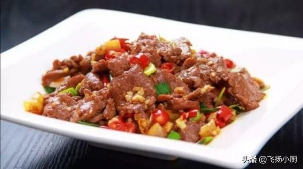 小提示:小抄牛肉的特点是肉嫩鲜香,所以放各种调味品和配料动作要快,炒制一定要用大火,快速成菜。