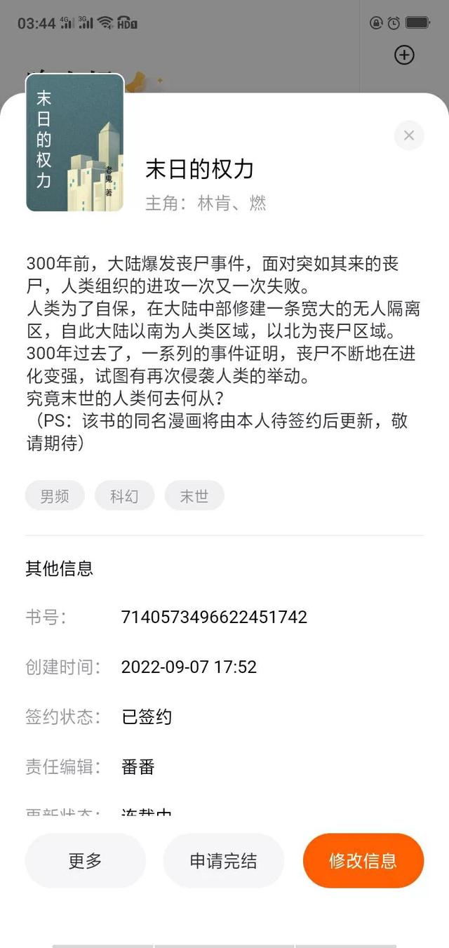 于是我洋洋洒洒写了两万字,申请签约,一次性过,虽然签约编辑是番番,但好歹第一步我是跨进去了。