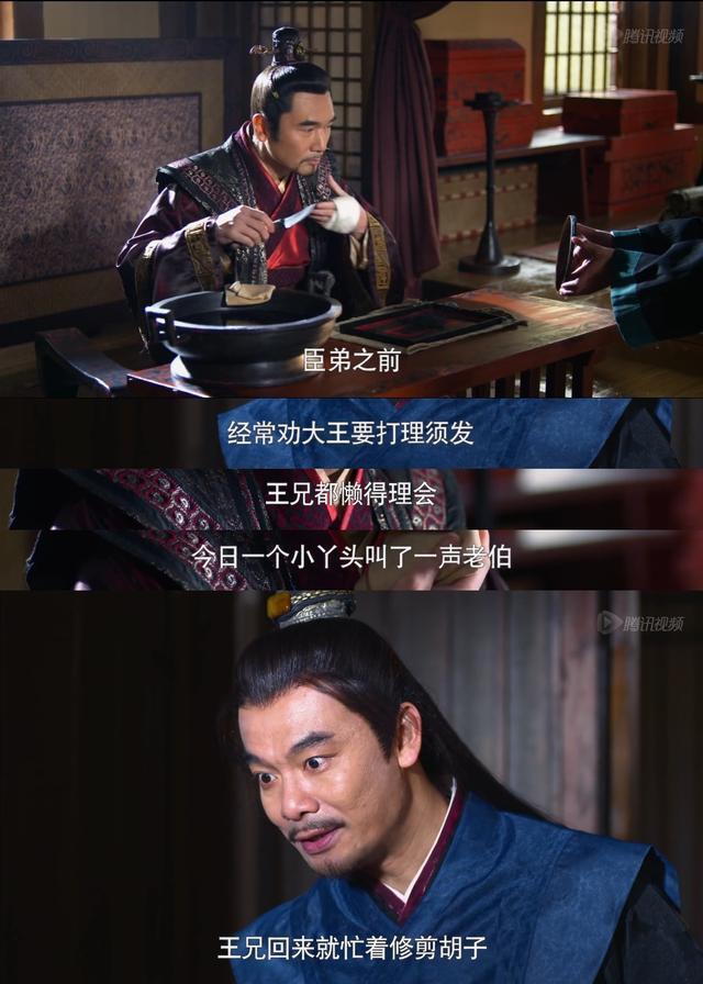 自从在楚国街头碰到芈月以后,秦王便对芈月一见钟情,后来因为芈月叫了他一声老伯,秦王回到驿馆就开始破天荒地刮胡子,为此樗里疾还打趣秦王。