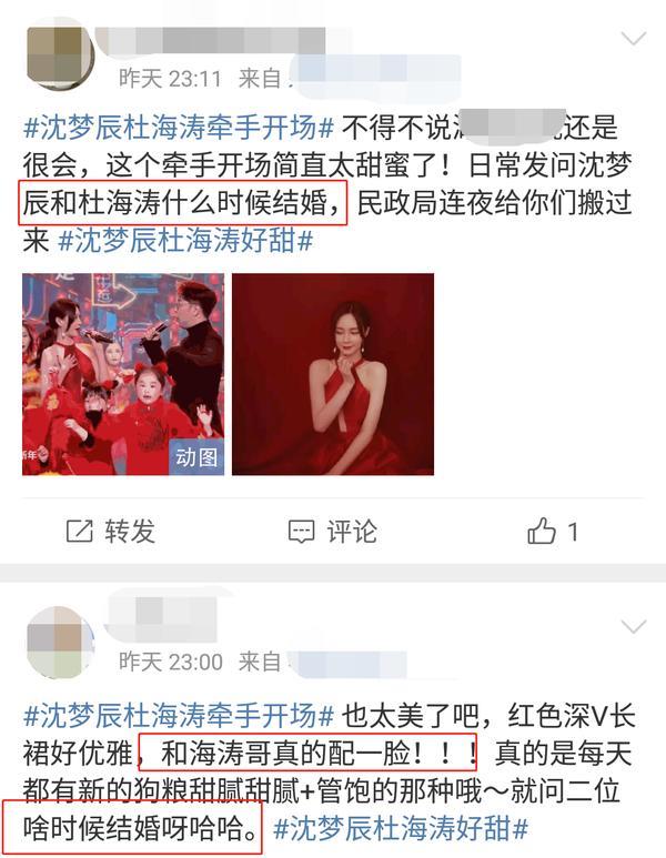 而网友看到沈梦辰与海涛再合体,都在夸他们牵手开场太甜蜜了,称两人配一脸,当然,少不了催婚环节,大家都在问两人到底什么时候结婚。