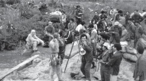 【《西游记》老照片:观音菩萨骑白龙马,八戒做的经典造型笑喷我了】剧组人员在黄果树大瀑布上游拍摄美猴王(六小龄童饰)出世后场面【图片来源于网络】