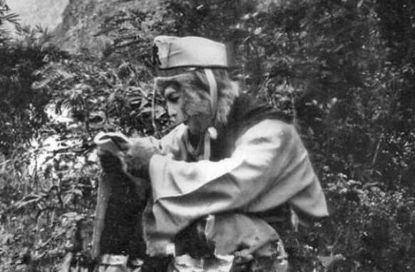 【《西游记》老照片:观音菩萨骑白龙马,八戒做的经典造型笑喷我了】图为猪八戒在大树下做出泰坦尼克号的经典造型,非常的搞笑【图片来源于网络】